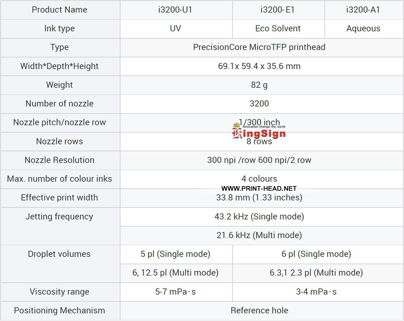 i3200 Printhead Specifications